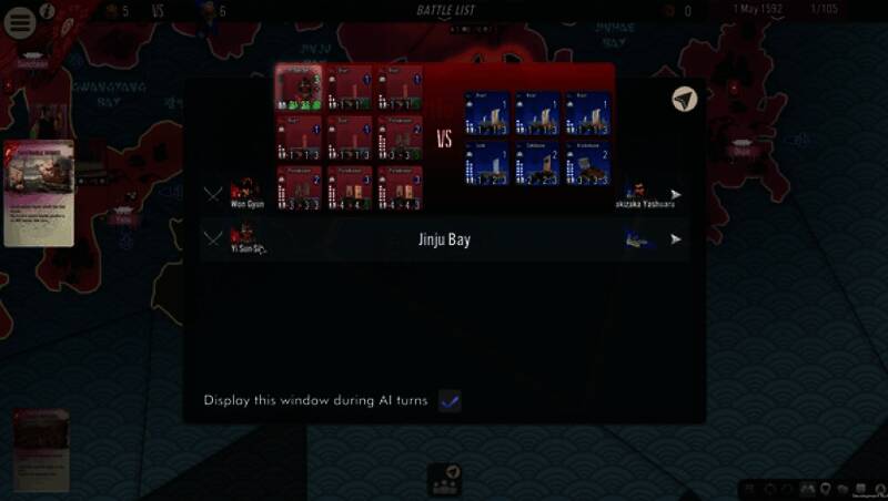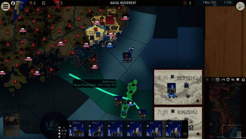 游戏采用团级单位规模,舰队由1至6个单位组成中队;每回合代表一周时间,地图中每个区域约为40平方公里。胜利条件方面,若日本方成功占领朝鲜全境及中国辽宁、直隶两省,则取得胜利;反之,若明朝与朝鲜联军成功将日军驱逐出半岛,则获胜。在无明确胜负情况下,累计胜利点数将决定最终结果。