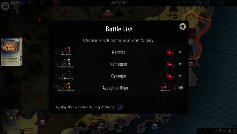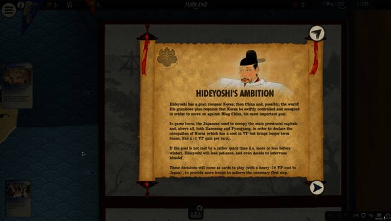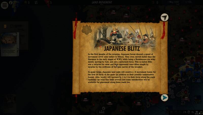 玩家可分别扮演丰臣秀吉领导下的日本武士军团,或是由朝鲜与明朝联军组成的防御力量。游戏引入事件驱动与卡牌机制,使双方在特定条件下都有机会指挥满清女真部落的军队,从而增加战场变数和策略深度。
