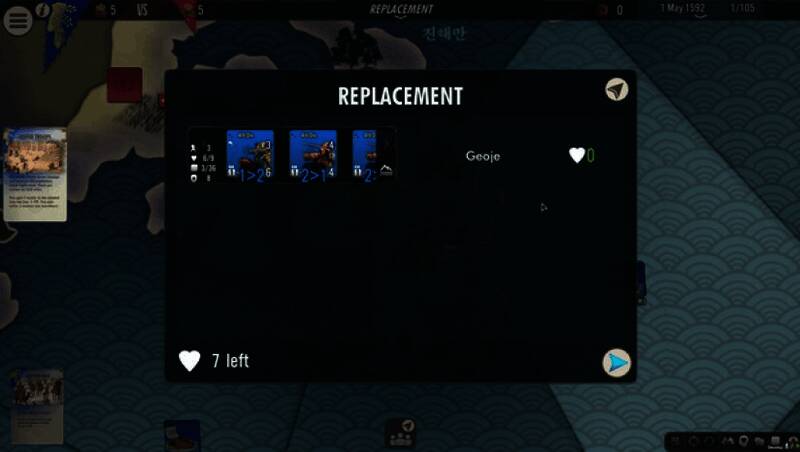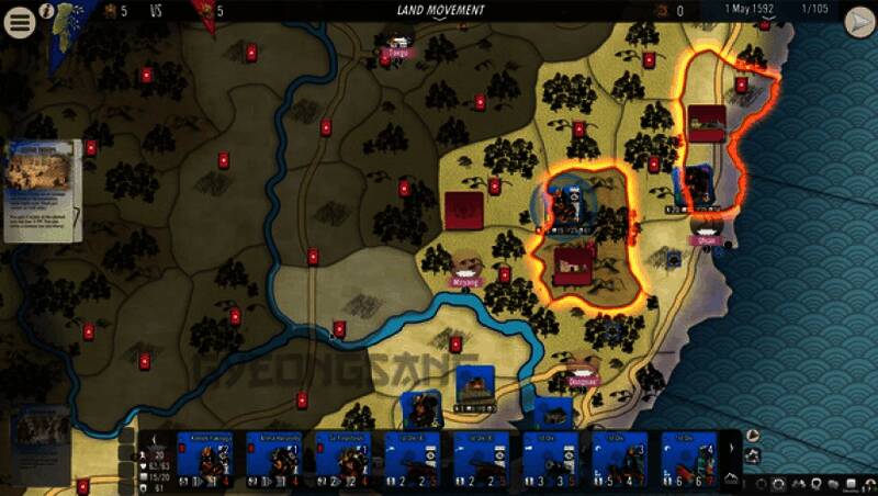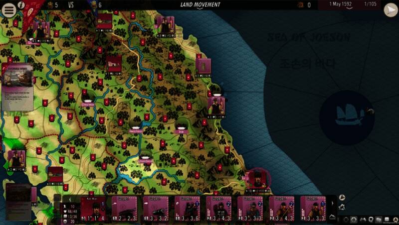 开局阶段,日军拥有强大的陆军部队,但海军虽数量众多却战斗力薄弱,其核心目标是通过征服整个朝鲜半岛进而威胁中国。而朝鲜方则需在敌强我弱的情况下坚守阵地,等待明朝援军到来,并利用地方叛乱与强大的海军扭转战局。维持部队补给与夺取关键城镇成为胜负的关键因素。
