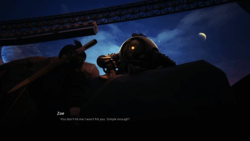《午夜机器人》采用“工业赛博朋克”美术风格,以锈蚀金属的冷灰色为主色调,搭配午夜蓝光与焊接火花的炽热橙红,构建出极具视觉冲击力的画面语言。高精度建模下的机械细节令人惊叹:齿轮咬合时润滑油飞溅、液压杆伸缩展现活塞纹理、机器人受损时内部线路颤动等效果均通过动态物理引擎真实呈现。