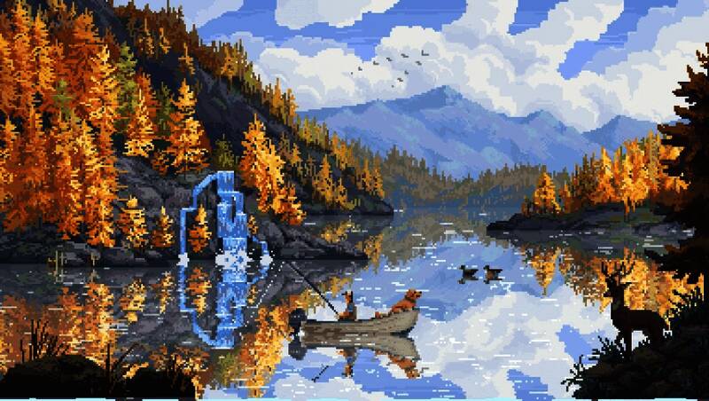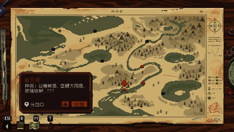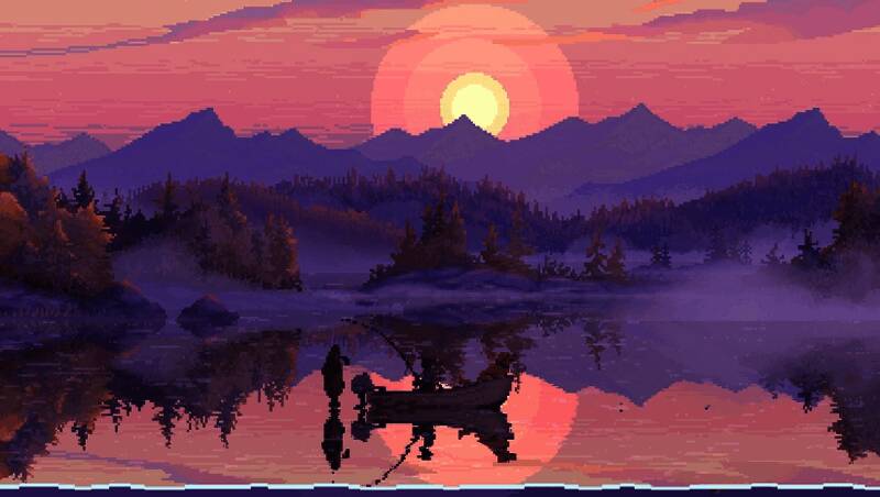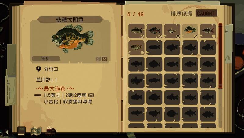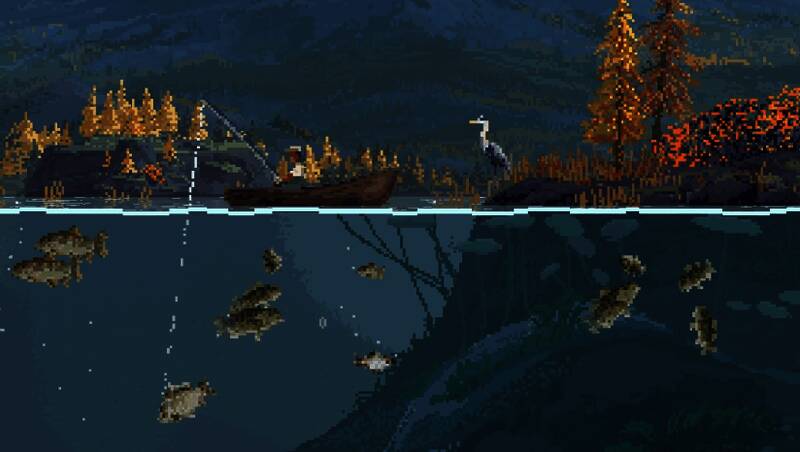 本作采用精致的手绘像素美术风格,尤其在水体表现方面极具质感。波浪的动态光影反射与鱼群游弋轨迹均以细腻动画呈现,带来“流动的油画”般的视觉体验。场景设计在写意与写实之间取得平衡——湖泊静谧、河流湍急、深海幽邃,再搭配环境音效如水流声与收线时的机械音,进一步强化沉浸感。鱼类的像素造型不仅辨识度高,也准确还原了它们的生态特征,玩家可通过外形逐步识别不同物种。整体画面以低饱和色调为主,辅以柔和光影,营造出平和而治愈的游戏氛围。