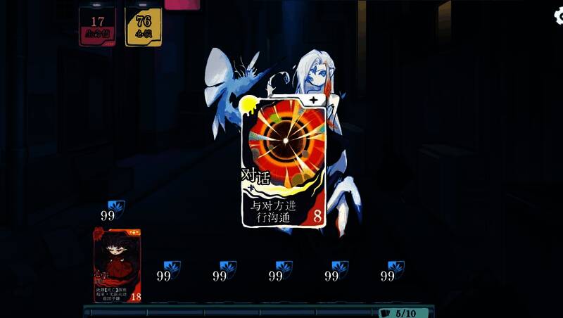 游戏采用回合制卡牌战斗系统,核心机制围绕“心脏牌”展开。玩家需通过抽牌、弃牌及调整卡牌位置来应对不断变化的战场局势。卡组构筑自由度极高,超过50张卡牌涵盖攻击、防御与诅咒等多种效果,合理搭配才是致胜关键。此外,每场战斗还需灵活应对外部攻击、防御需求以及持续累积的诅咒效果,考验玩家的全局思维与临场判断。