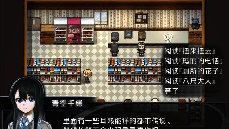 游戏采用细腻的像素美术风格,搭配手绘立绘与CG过场,完美还原了日本小镇的生活气息。便利店货架上的每一款商品都细致入微,公园秋千随风轻摆,而悬疑场景则通过冷色调光影与狭小巷道增强压抑感。演出设计尤为出色,旧屋探险中烛光摇曳的动态效果,让玩家仿佛身临其境,进一步增强了沉浸式体验。