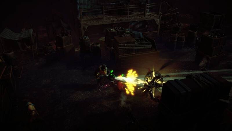 游戏玩法融合枪械射击与近战斩击,玩家可通过连击技巧(如射击后接冲撞、反击)建立战斗节奏,应对源源不断的怪物潮。资源管理也是关键环节——收集钥匙、道具与武器蓝图,用于解锁区域或升级装备。每次撤离前必须权衡收益与风险,携带过多战利品会降低机动性,但空手而归则无法提升角色实力。