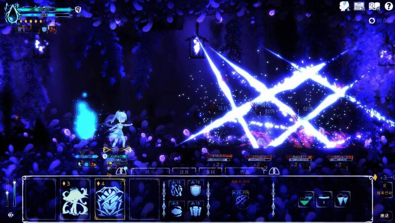 角色与特效同样精致考究,主角“露”与敌人的造型兼具幻想感与细节刻画,战斗中的技能特效华丽而不杂乱,弹反动作帧动画流畅自然。