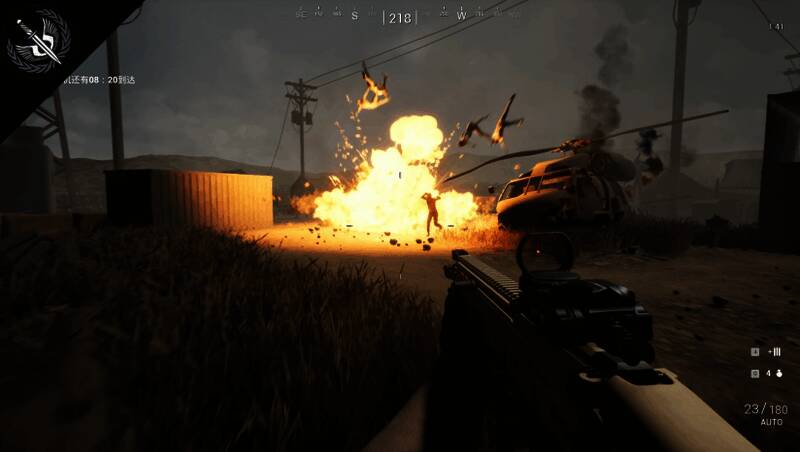 爆炸特效与武器光轨采用写实渲染技术,配合动态天气系统(如极光、沙尘暴等),进一步提升临场感。音效方面,游戏摒弃传统背景音乐,转而使用无线电噪声、武器咆哮声与环境音效组合,真实还原战场氛围。