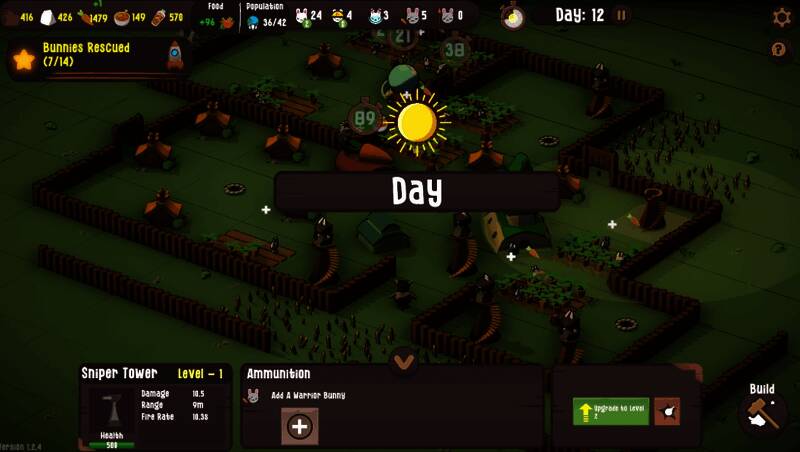 夜间模式下,利用白天所建防御工事进行激烈对抗。灵活运用墙体结构、陷阱装置以及各类炮塔组成坚不可摧的防线。此外还可以直接指挥战士兔参与前线战斗,共同抵御一波又一波不断增强的敌军攻势。