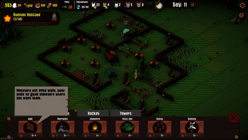 在这个独特的世界里,你将带领一群勇敢的兔子展开一场生存之战。每天都是新的考验:白日里你需要扩展殖民地、优化资源采集系统;当夜幕降临,怪物浪潮来袭时,则要依靠精心构筑的防御体系来守护家园。最终目标是在黑暗吞噬一切之前完成火箭发射,开启通往星辰大海的旅程。