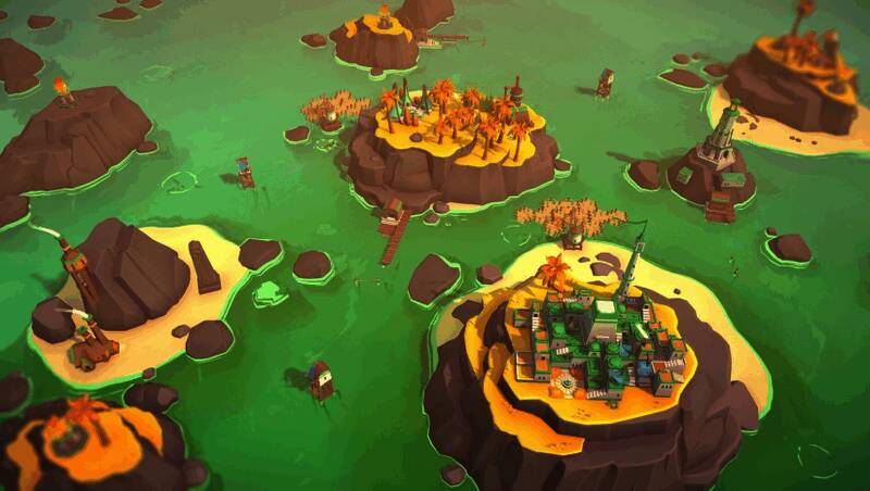 游戏采用极简主义美术风格,以低多边形建模和清新色调构建宁静的视觉体验。岛屿生态通过柔和的色彩分层呈现——如湛蓝海岸线与翠绿植被的对比,建筑则以鲜明的几何造型突出功能性(如灯塔的旋转光束动态效果)。环境细节融入动态变化:潮汐涨落影响可建造区域,昼夜光影交替增强沉浸感。照片模式的加入允许玩家捕捉精心布局的岛屿景观,进一步凸显其艺术设计优势。