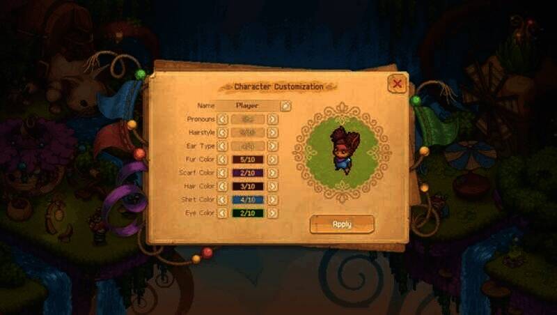 游戏采用可爱的像素风格,角色和场景设计十分精致。约德尔人形象毛茸茸的,活泼欢脱又逗趣,建筑和自然环境的细节也很丰富,充满了复古和怀旧的氛围。