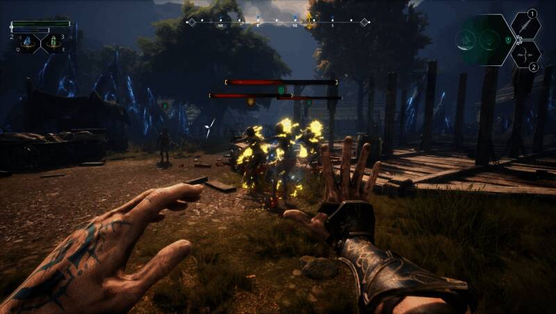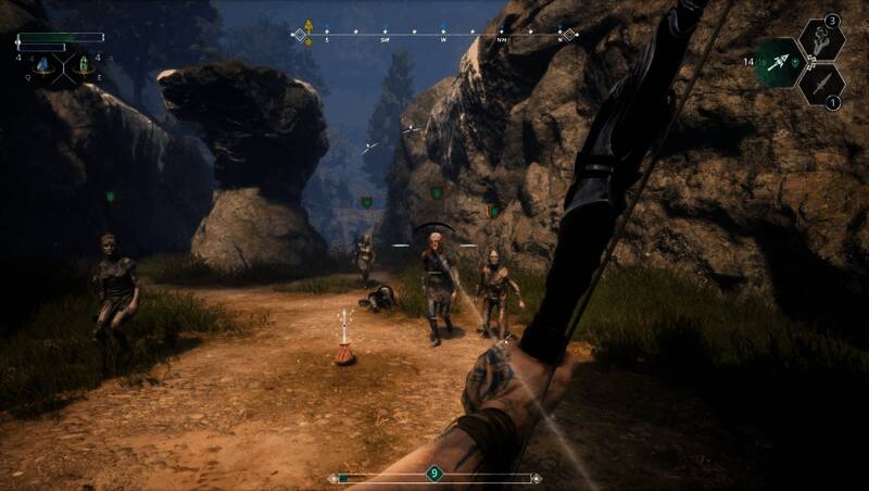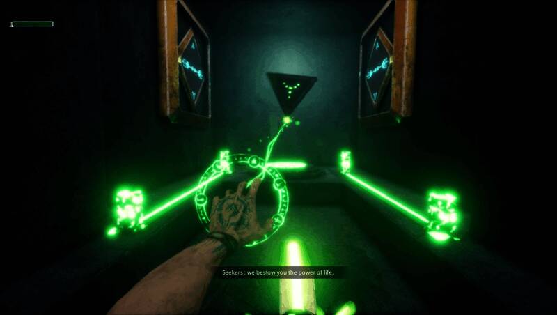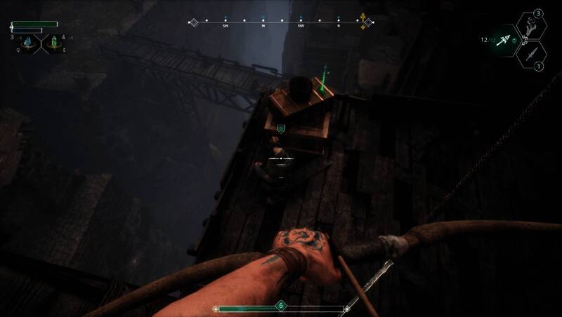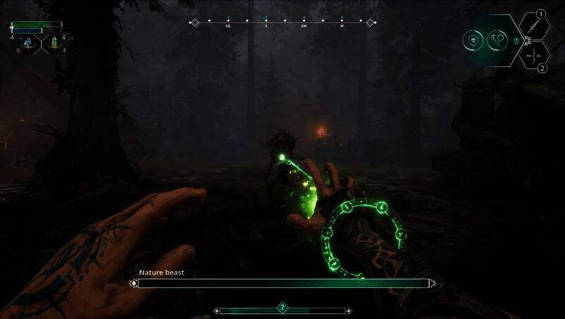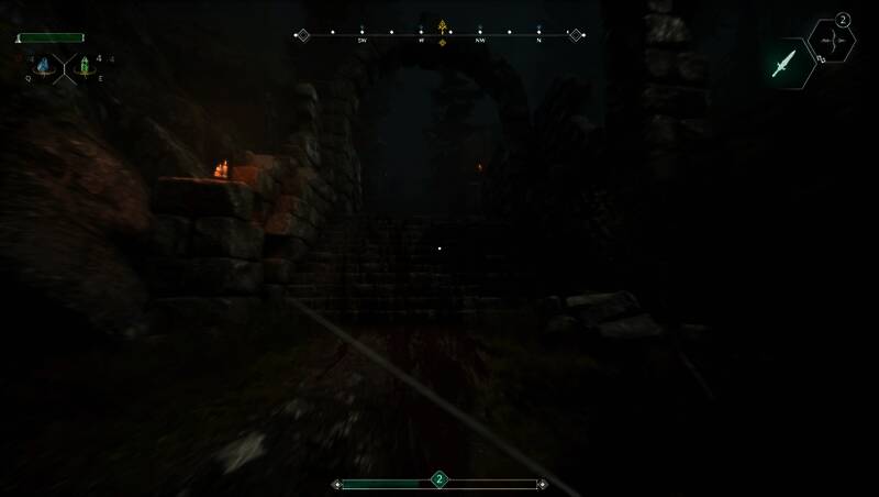 游戏的战斗系统融合了剑术、法术与弓箭三种战斗方式,玩家可自由搭配以应对不同敌人。剑术采用第一人称视角的连击机制,法术可用于控制敌人,而弓箭则能远程狙击弱点或摧毁关键目标如“黑暗之眼”。此外,游戏中还包含大量机械谜题与平台跳跃挑战,解谜可获得新能力,解锁隐藏区域,为探索增添策略性。