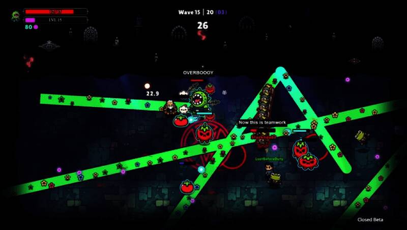 在对抗不断升级的怪潮过程中,玩家需要灵活应对每波20至90秒的密集进攻。通过收集敌人灵魂进行升级,并在波次之间购买强化道具,提升自身战斗力。