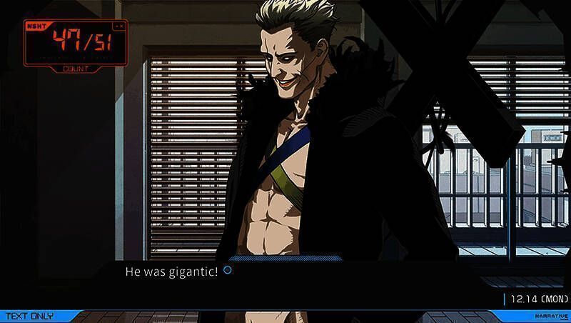 本作最令人惊艳之处在于其大胆突破第四面墙的设计:主角高冈步论会直接意识到“你在操控他”,并向你求助关键选择,让玩家从旁观者变为剧情推动者。这种Meta元素不仅提升了沉浸感,也深化了“模拟世界 vs 真实现实”的哲学探讨。作为科学ADV系列一员,《匿名代码》延续了《命运石之门》的世界观逻辑,但创新地引入“世界层”概念——主角并非穿梭平行世界,而是垂直干预下层模拟宇宙,带来更具层次感的科幻张力。