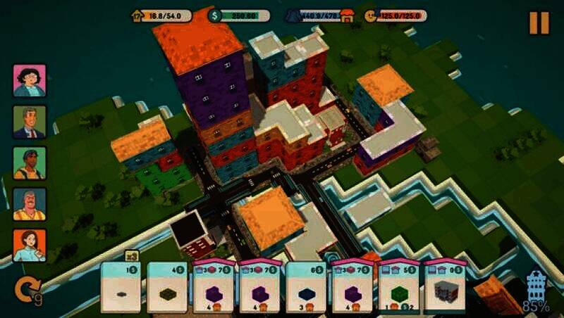 游戏运用类似俄罗斯方块的“城镇叠叠乐”玩法,建筑以方块形态呈现,玩家需依据方块的形状和功能,进行战略性的放置与堆叠,合理分配各类建筑,比如科学规划住宅、公司和公共服务建筑的位置。