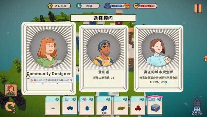 玩家通过持续不断地建设城市获得经验值并提升等级,进而解锁更多建筑类型或升级选项,如降低人口增长速度、减少清除障碍物的成本等,增加了游戏的可玩性和成就感。
