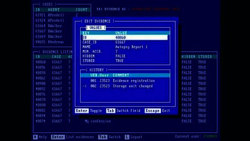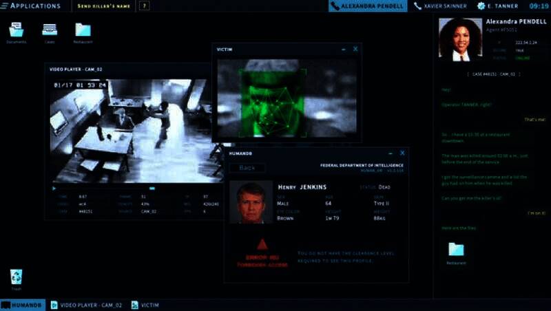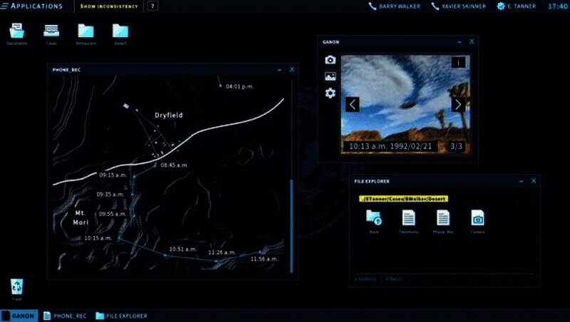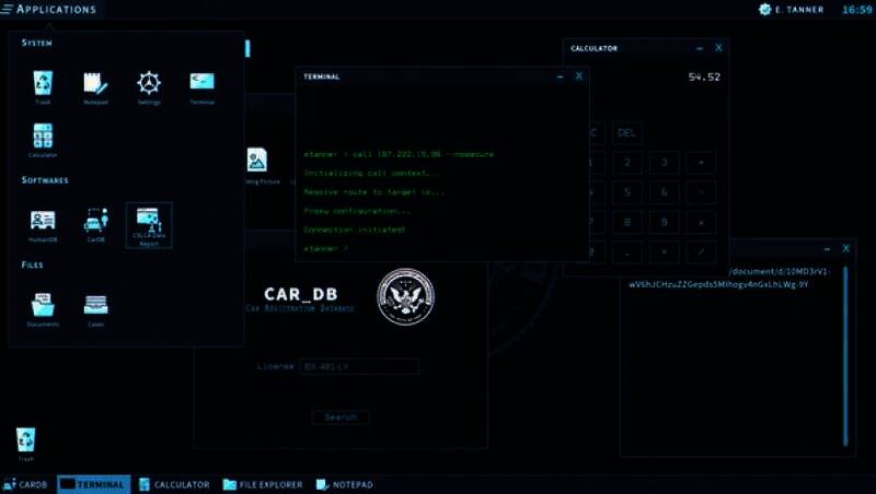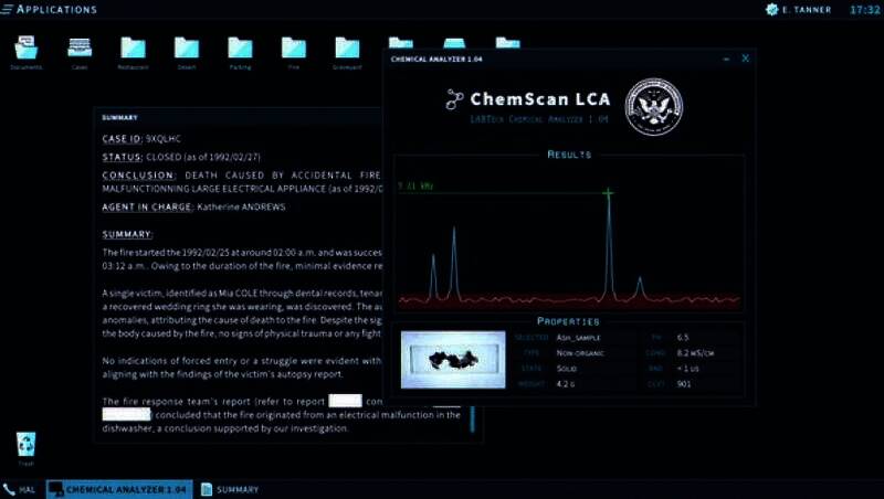 玩家可以使用FDI提供的一系列先进的线索分析软件,如图像和视频分析软件、公民和车辆信息数据库、化学光谱分析仪、笔记本和功能齐全的命令行终端。玩家能够利用图像分析软件,放大模糊的监控视频画面,识别犯罪嫌疑人的面部特征;或者通过化学光谱分析仪,分析现场残留的不明物质成分。