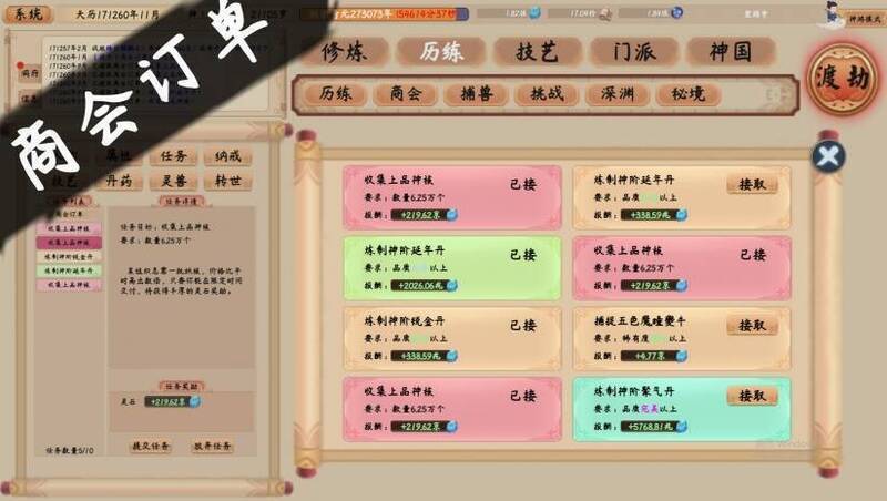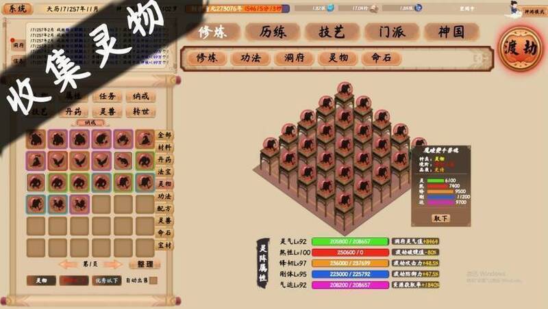 游戏中期,玩家能够创建自己的门派,招募不同天赋的弟子,收集并开发资源,建造如洞府、经幡阁、武场等门派设施。同时,组织弟子进行修炼和历练,提升门派的实力和威望,与其他门派展开交流、竞争或合作。