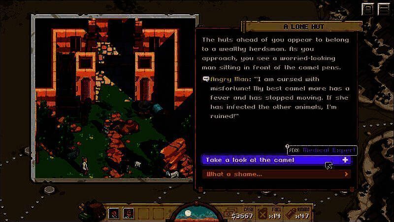 游戏包含5个难度不同的活动,每次尝试都会生成全新的冒险之旅和独特的故事情节。玩家探索的每个地点都有精心设计的400多个故事情节。在面对事件时,玩家拥有自主选择权,像拯救村民、搜查水井等不同选择,会导致不同的剧情发展。