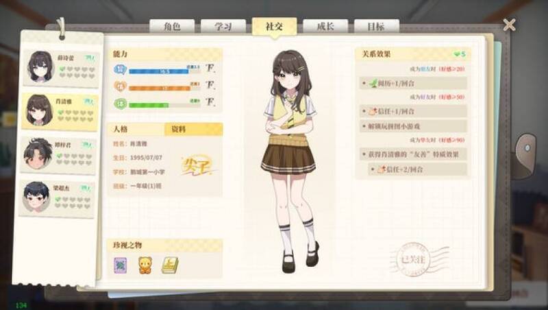 游戏具备学习、社交、体魄等多方面属性的提升机制。玩家可通过合理安排学习时间来提高成绩,积极参与社交互动提升情商,坚持进行体育锻炼增强体魄。