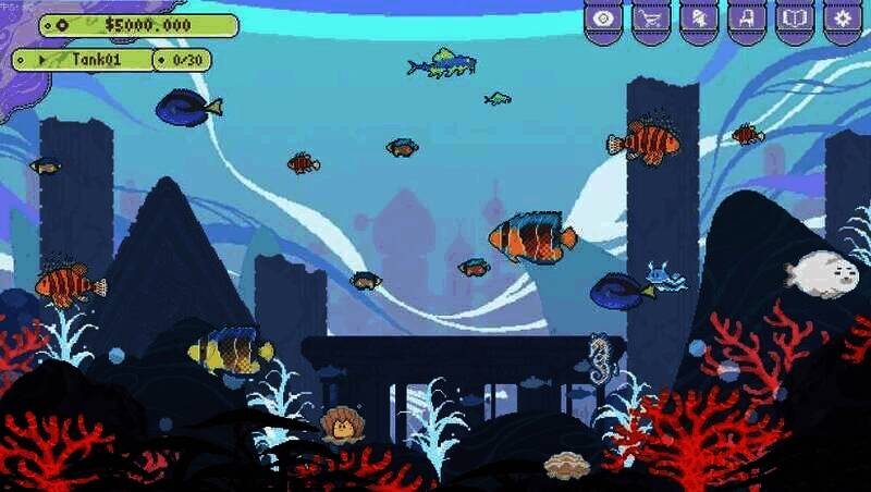 游戏采用像素艺术风格,色彩鲜艳,生动地展现了各种鱼类和鱼箱场景,给人带来轻松愉快的视觉感受。