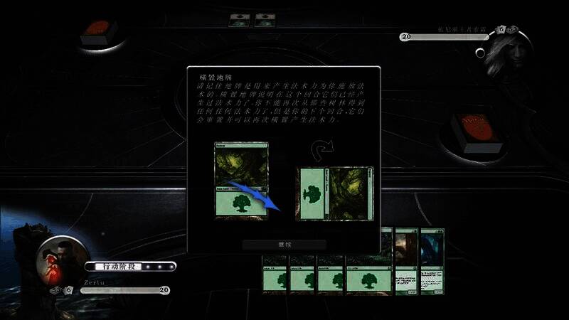 2、开始阶段包含重置步骤(电脑自动完成)、维持步骤(可使用法术与异能触发)、抓牌步骤(电脑自动完成);行动阶段可让地牌进场、召唤生物、使用法术,本回合召唤的生物一般不能攻击,除非有敏捷异能,但可阻挡。