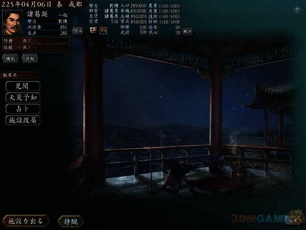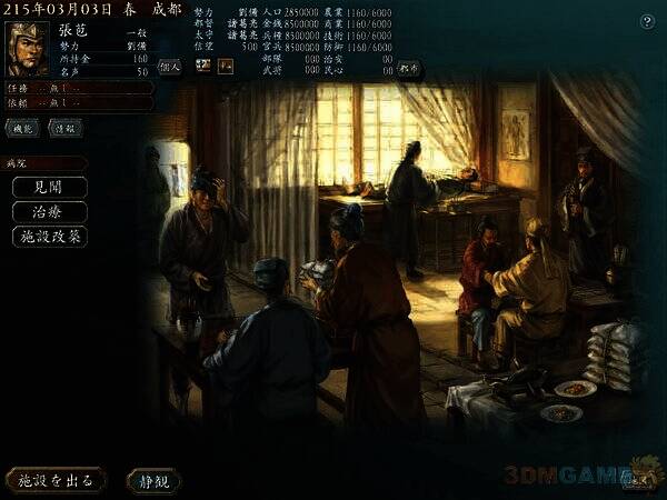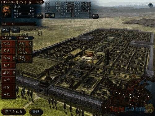 内政操作在相应设施里进行,分为基本设施和特殊设施。基本设施有宫城、农地、市场等;特殊设施根据城市地域特性建设,如北方南皮有医院等,南方长沙有大商家等。内政在城市俯视图中开展,不同城市搭配不同背景,特殊设施醒目可见。