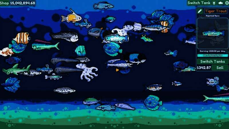 游戏采用精致的像素风格画面,小鱼形象栩栩如生,在水族箱里游动的场景十分有趣,给玩家带来视觉享受。水族馆的场景设计精美,有不同风格的水族箱,如模仿海底珊瑚礁的场景,五彩斑斓的珊瑚、海葵等点缀其中,宛如海底花园;还有充满科技感的未来水族箱,独特的照明和过滤系统营造出奇幻氛围。