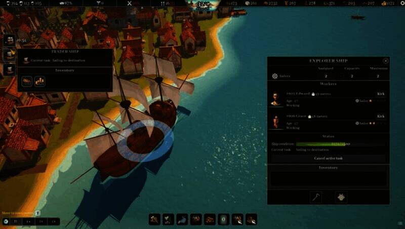 游戏里,玩家能通过采矿、交易和掠夺赚取金币。商人会定期到村庄,不同商人价格有别,可低买高卖。还能建造贸易船,依据邻近村庄进出口资源开展贸易,管理自身资源。