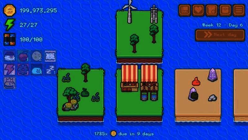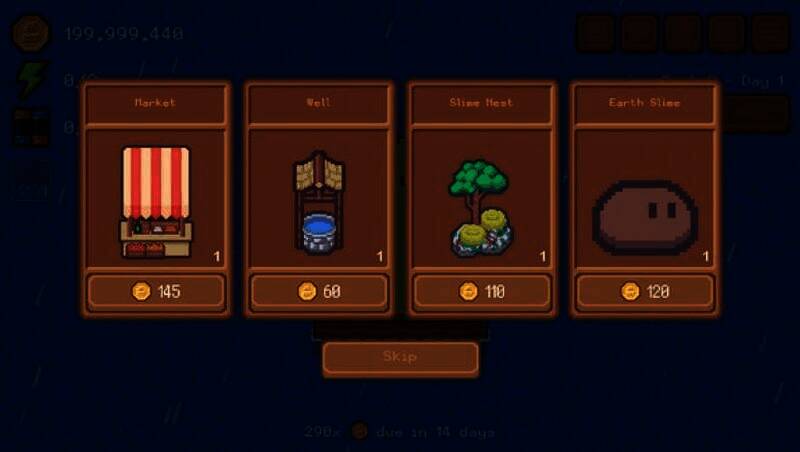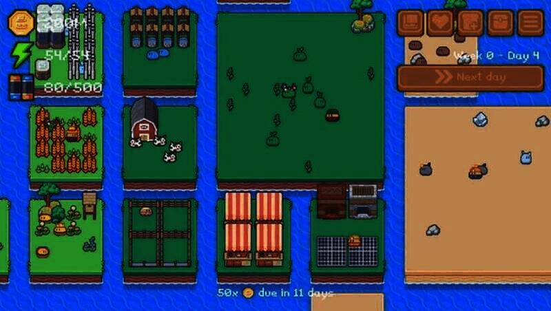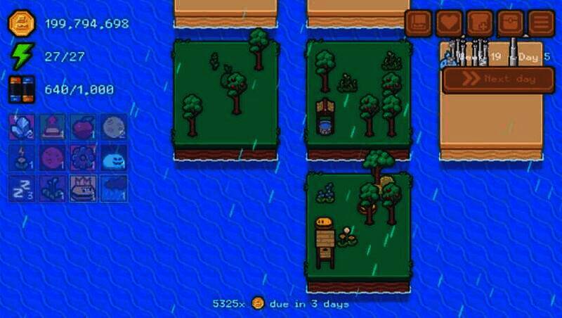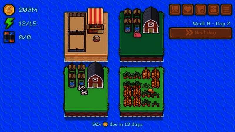 3、资源变现积累财富:玩家收集到的资源可用来兑换金币,所得收入用于支付不断临近的房租,并投资以实现农场的进一步扩张。游戏的最终目标是积累尽可能多的财富,因为一旦无法支付房租,苦心经营的帝国就会崩塌。