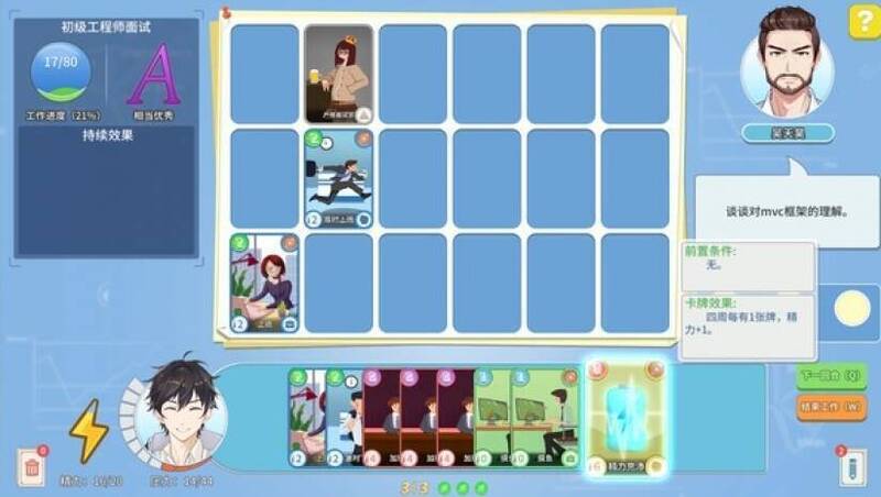 游戏融入卡牌构筑式玩法,玩家可运用各种卡牌流派套路应对职场中的各类工作挑战。