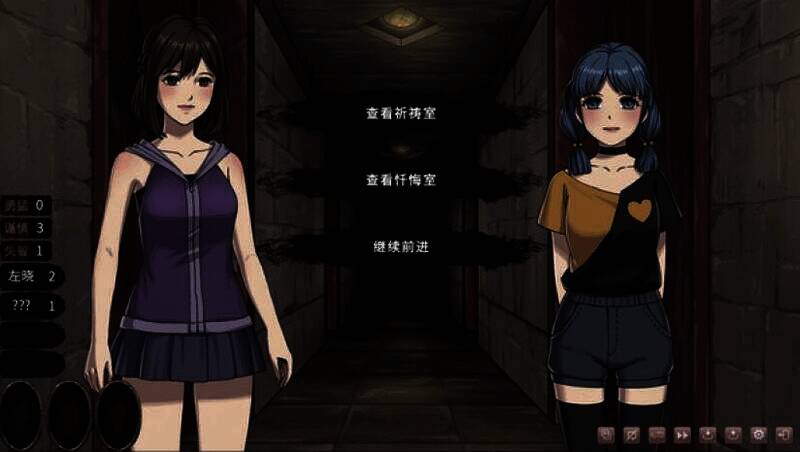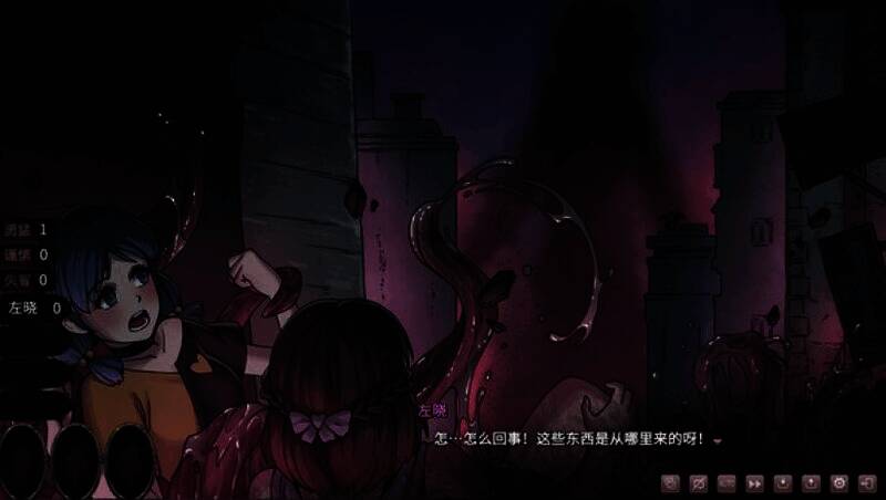 游戏巧妙地将克苏鲁风格的恐怖猎奇元素融入百合题材叙事中,营造出独特氛围。玩家既能感受克苏鲁神话中对未知的恐惧、诡异视觉设计和潜在威胁,又能体会到细腻百合情感线带来的温情,两位主角间的互动展现出脆弱而动人的情感张力。